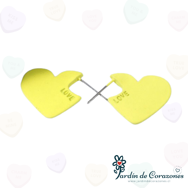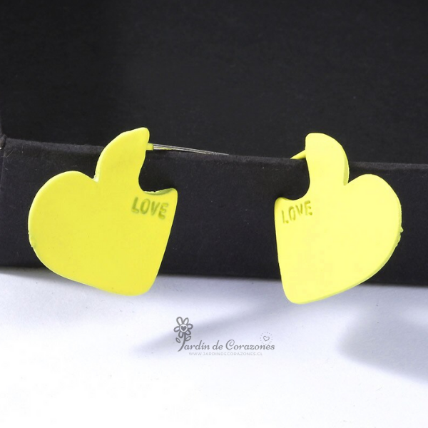 Par de aros que poseen como diseño principal corazones de color amarillo.