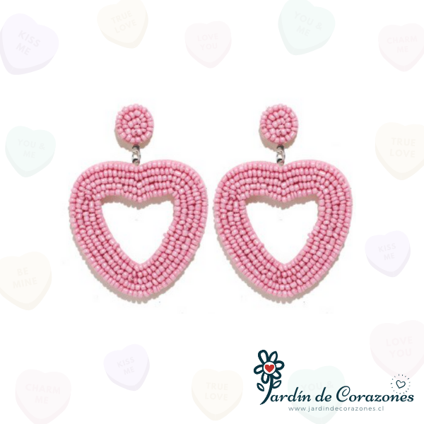 Hermosos aros, compuesto por corazones rosados y tres delicadas perlas en cada uno.