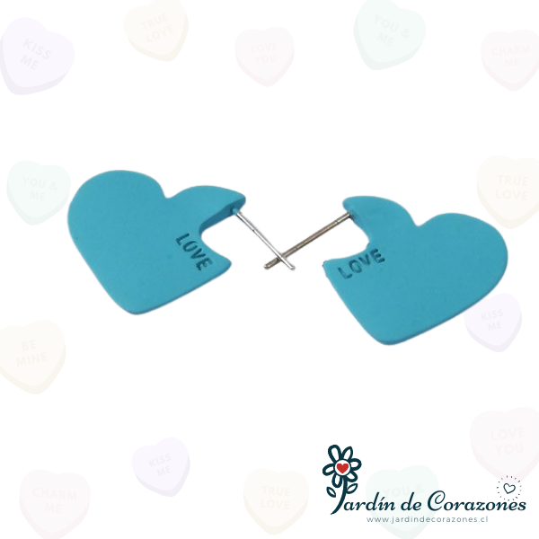 Par de aros que poseen como diseño principal corazones de color turquesa.