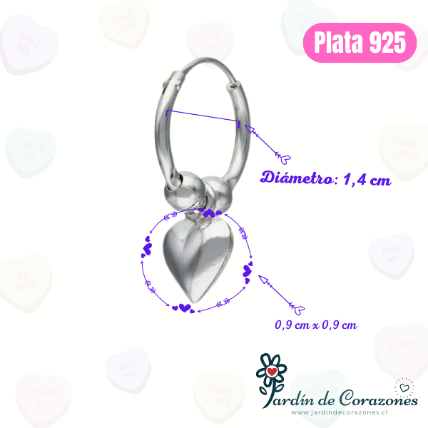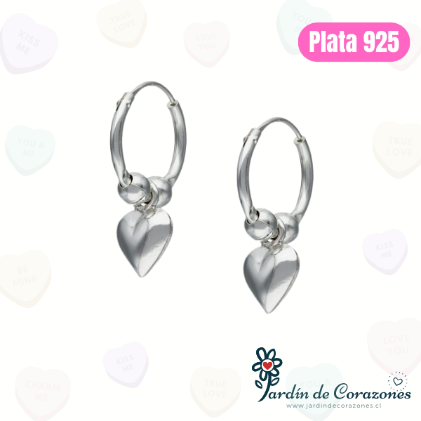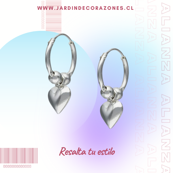 Hermoso aros tipo argolla que tiene colgando un corazón.