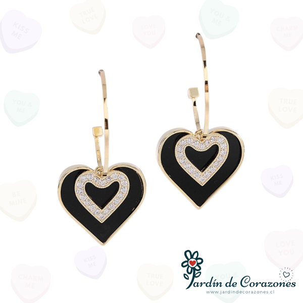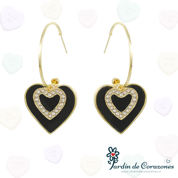 Hermosos aros, con un corazón negro colgando de una argolla y hermosos strass.