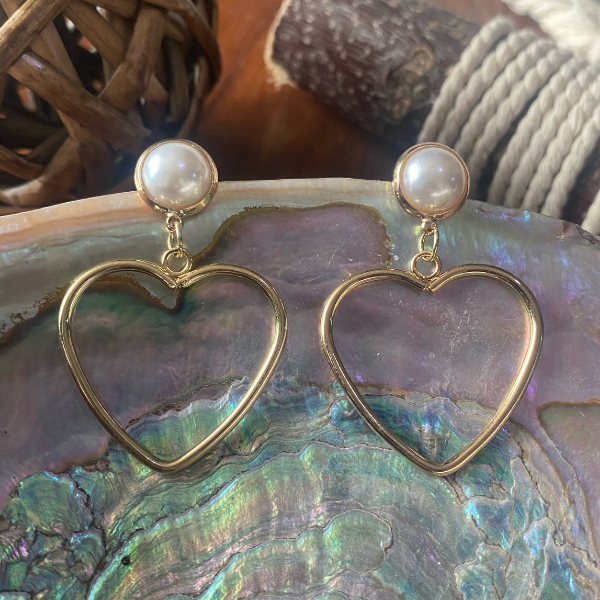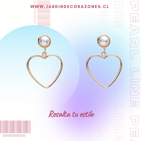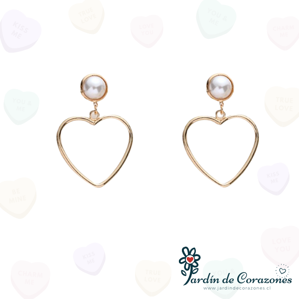 Par de aros que poseen una perla central blanca y colgando un corazón.