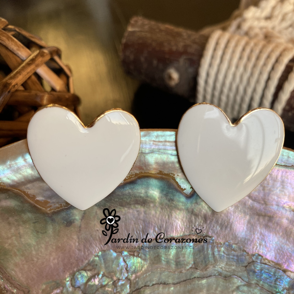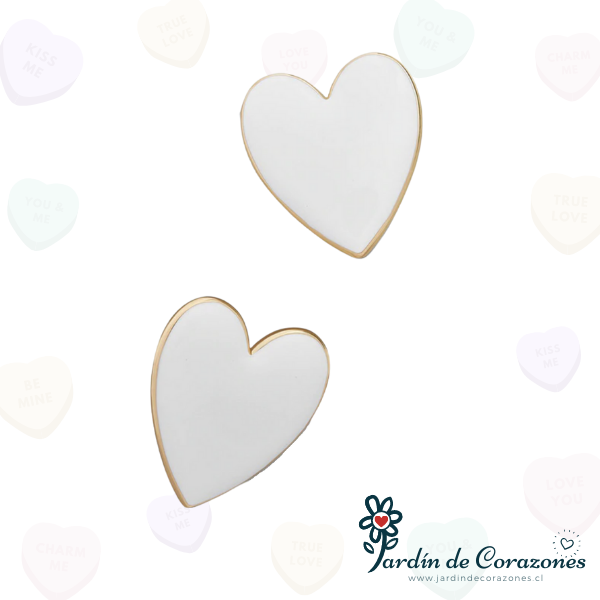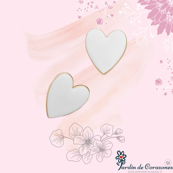 Par de aros que poseen como diseño principal corazones de color blanco.